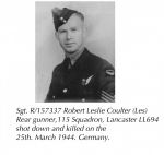 Hi. My uncle Sgt. Robert Leslie Coulter (Les) was a rear gunner on the Lancaster LL694 that was shot down on the night of 25th. March 1944 with your uncle Thomas Vipond. Would love to hear from you. Joan@thejamesons.cc